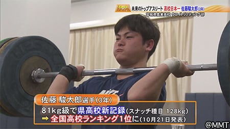 そして先月発表された高校ウエイトリフティングのランキングで全国1位になった