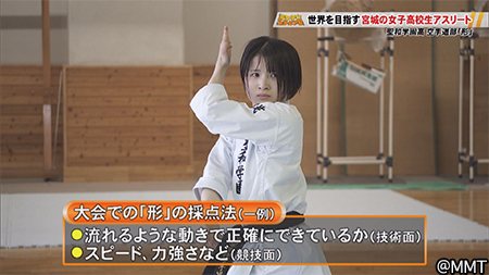5歳から空手をはじめ中学2年生のときに世界大会の14歳「形」の部で優勝。