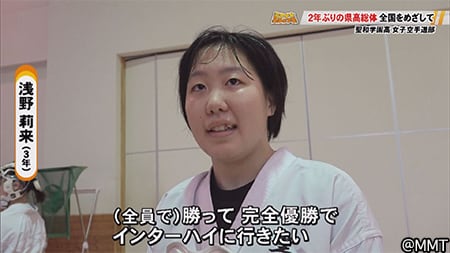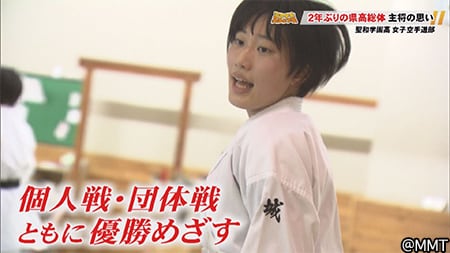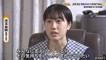 児玉さんの高総体での目標は個人戦、そして団体戦ともに優勝。3年間支え合い技術を高めあってきた仲間たちと一日でも長く空手をすること。