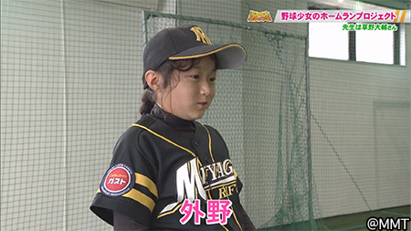 リトルリーグチーム“利府ユニオン”に所属している吉田和奏(わかな)ちゃん。