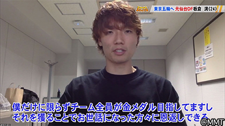 板倉滉選手 「目指すところは金メダル。1試合目から間違いなく難しい戦いが続きますけどチーム一丸となって、日本国民みんなで戦ってくれると嬉しいです。金メダル獲ります!」
