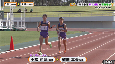 その差をみるみるつめて植田さんはチームを首位に押し上げます。そのままトップでタスキリレー!そして区間賞の活躍です!