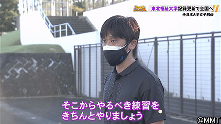 本番に向けて東松島で行われた合宿では、駅伝のメンバー先行も兼ねた強度の高い練習が行われました。中でも絶好調でチームを引っ張ったのが4年生の植田真央さん。