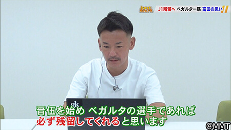 富田選手「この先J1に居続けなければいけないクラブだと思いますし、それを自分たちが落とすわけにはいかないので、残り7戦1つずつ勝点3を積み上げていって、残留できるように一丸となって戦っていきたいと思います」