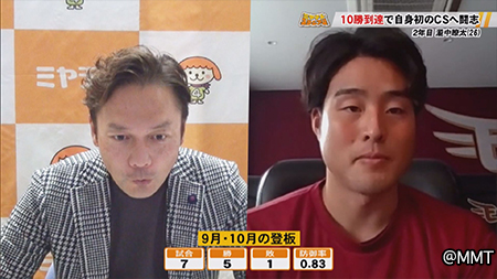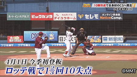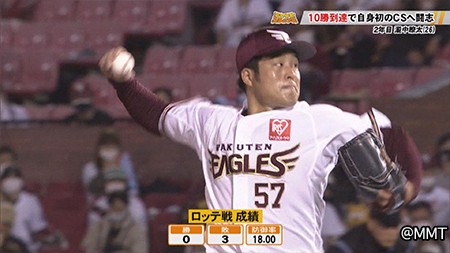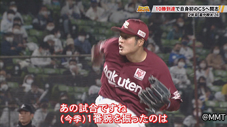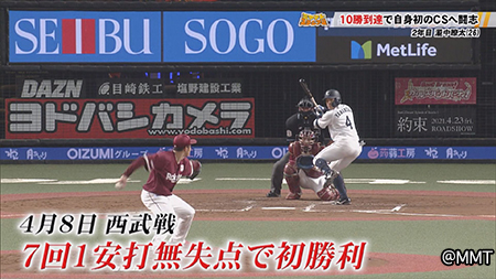チームでは則本投手の11勝に次いで2番目に多い勝利数になりました。