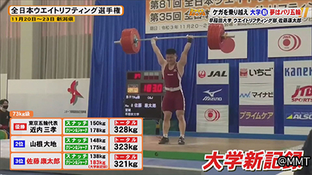 社会人選手も出場する中、183㎏の重量を挙げ大学新記録を樹立。
