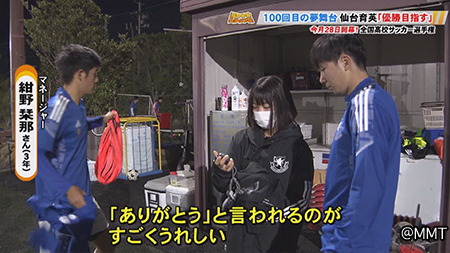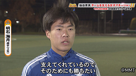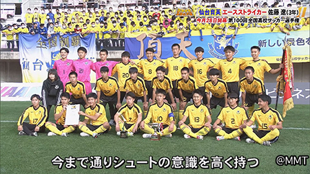 遼くんの活躍もあり、5年連続36回目の全国高校サッカー選手権の切符を手にした仙台育英。遼くんは、全国大会でもチームを引っ張るプレーをしたいと意気込みます。