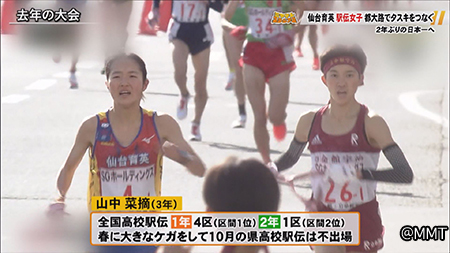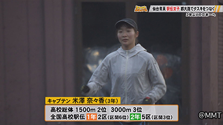 全国高校駅伝には米澤さんと共に1年生から出場、去年は最長区間の1区6㎞を走り、区間2位の成績でした。