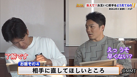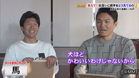 去年一年で兄弟のように親密になった二人。お互い相手のことをどう見ているのかお題を出しました。