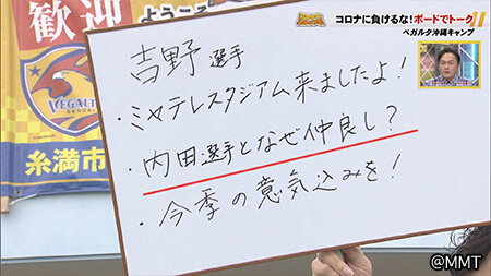 ボードを使って選手たちとコミュニケーションをとってきました。