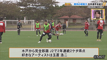 J2で2年連続2桁ゴールを挙げている点取り屋で、練習でも利き足の左足豪快なシュートを叩き込んでいました。