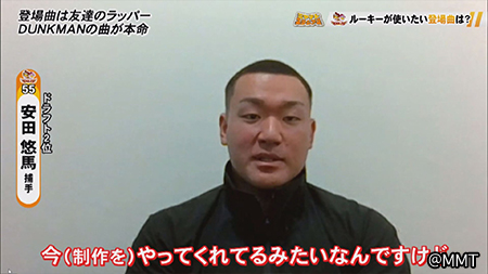 安田選手「自分の友達なんですけど、1人めちゃくちゃおもしろいラッパーがいて、『DUNKMAN』なんですけど僕が命名して、中学・高校と野球部で一緒でずっと仲良くてそいつに(登場曲)作ってもらいたいです」
