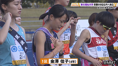 プレッシャーのかかる中、金澤さんは5位集団を引っ張る位置でレースを進め、1区の大学史上最高順位5位でタスキを渡す快走を見せました。