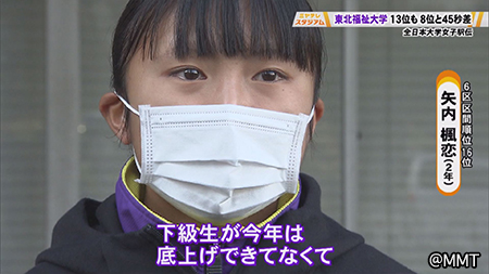 矢内楓恋さん(2年)「4年生が今まで1年間チーム引っ張って来てくれて、下級生が今年は