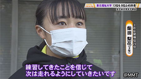 柴田梨花さん(2年)「練習で出来ていたのに、大会でその練習の出来た成果を出し切れなかったので、練習してきたことを信じて次は走れるようにしていきたいです」