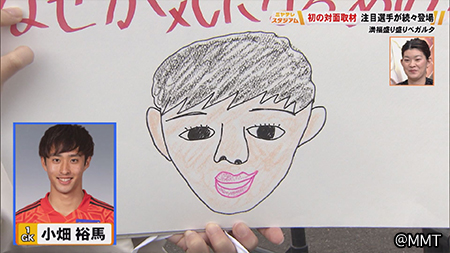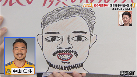 積極的な攻撃参加で今シーズン4得点をマークした期待のディフェンダーです。このコーナー初登場ということで福ちゃん得意の似顔絵を描いてみました。