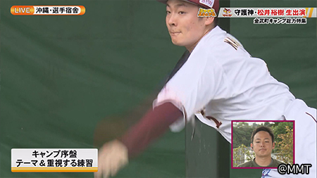 松井投手 「今シーズンは必ず優勝します。最後のマウンドに立てるように僕も準備頑張ります。開幕戦 仙台のマウンドで待っているので、応援よろしくお願いいたします」