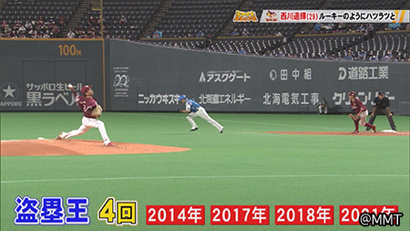 西川といえば、50m走5秒8の俊足の持ち主でこれまで4度の盗塁王を獲得。シーズン40盗塁以上も4度記録するなど、通算311盗塁は現役最多を誇ります。