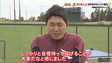 西口投手「昨年は本当に後半戦すごく良い場面でも投げさせて頂きましたし、1軍であれだけ投げられたっていう経験はすごい今年に生きてくると思うので、もっともっと頭を使って投球できたらなと思います」