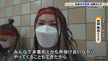 今回のミヤテレスタジアムでは、先月行われた全国大会に挑んだ県内のダンス強豪校 仙台城南高校ダンス部に密着しました!