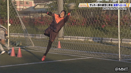 中高生のゴールキーパー陣に交じって約2時間、ともに汗を流したシュミット選手。