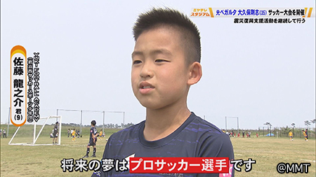 若林区荒浜や岩沼市などで開催されたサッカー大会。この大会は震災当時ベガルタ仙台の選手で現在はタイのプロリーグで活躍している大久保剛志選手が、震災からの復興を支援しようと開きました。
