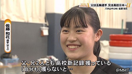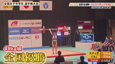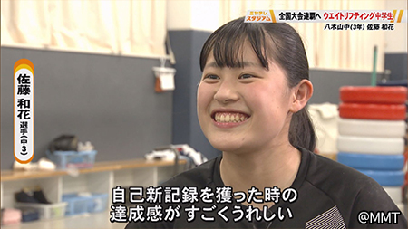 去年、全国中学生大会 重量挙げ女子49キロ級で優勝した将来が期待される若きアスリート、佐藤和花さん 中学3年生。