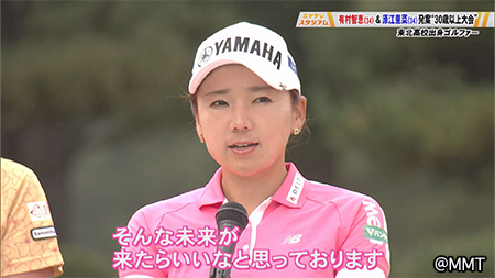 有村選手「これから女子プロゴルファーが何歳になってもどんな状況や環境に於いても、何かを諦めるっていう事が少なくなっていき様々な選択肢の中から自分の幸せだと思える道を歩んでいける、そんな未来が来たらいいなと思っております」
