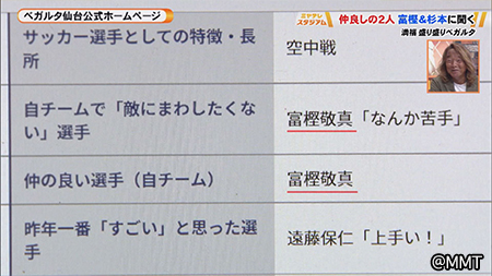 クラブの公式ホームページを見てみると、杉本選手のプロフィールには富樫選手の名前がズラリと並んでいました。