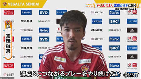 富樫選手「得点の部分もそうですし、そうじゃない所でも自分のやれる事をやって勝点3につながるプレーをやり続けたいなと思います」