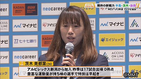 茨木美都葉選手「自分の持ってるものを最大限に発揮し、マイナビの勝利に貢献できるよう精一杯頑張っていきたいと思います」