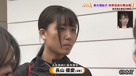大会直前に疲労骨折で離脱した長山優愛さん、キャプテン権マネージャーの梅村光理さん。