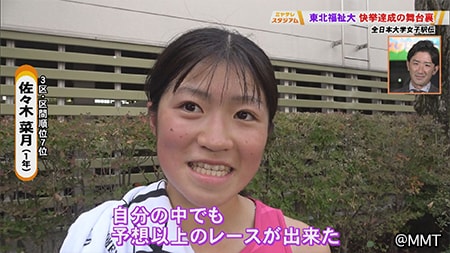 その柴田さんが待つ第3中継所にやってきたのは、5人抜きし、11位に順位をあげた1年生・佐々木菜月さん。