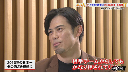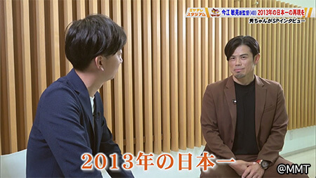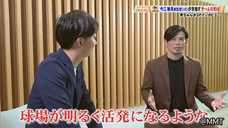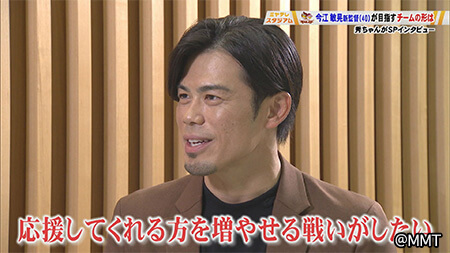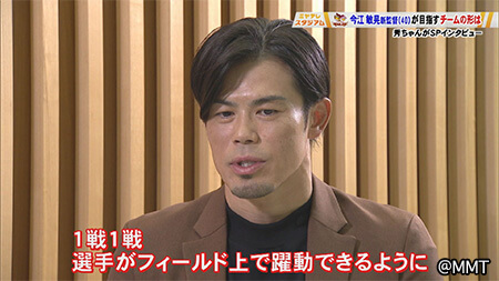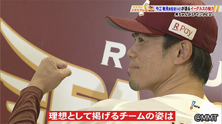 秀ちゃん「楽天球団の魅力というのはどんなところだと思いますか?」 今江敏晃新監督「すごく温かい。ファンの方々もそうですし、街の人たちもそうなんですけど、選手もそう、チームもそうなんですよね。僕はファミリー感を感じます」