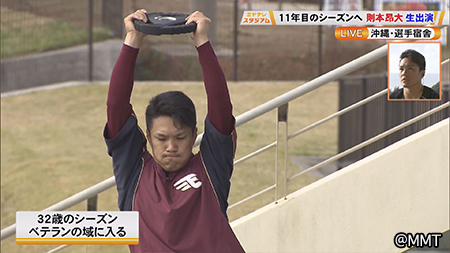 則本投手「このキャンプでしっかりと体を仕上げて開幕からいいスタートできるように頑張っていきたいと思いますので、今シーズンまた応援よろしくお願いします」