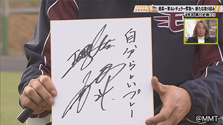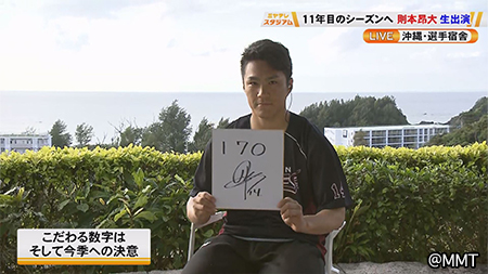 則本投手「170!イニングですね。ここ数年長いイニングを投げられなかったっていうこともあるので、170イニングっていうのは1年目にクリアした数字でもあるので、そこは最低でも行きたいなっていうのがやっぱりありますね。先発ピッチャーは長いイニング投げないと中継ぎの負担もあるので頑張りたいなと思います」