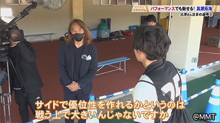 北澤さん「サイドで優位性を作れるかというのは戦う上で大きいんじゃないですか?」 真瀬選手「自分のサイドはやられたくないし、自分がどんどん突破してチャンスを作りたいという気持ちがある」