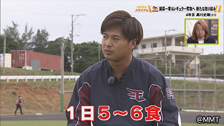 黒川選手「食事をちょっと変えて、体のキレ・動き・疲れ方も変わりました。(これまでは)1日にできるだけ一気に多くの量を食べていたんですけど、それをやめて(食事の回数を)細かくしました。」