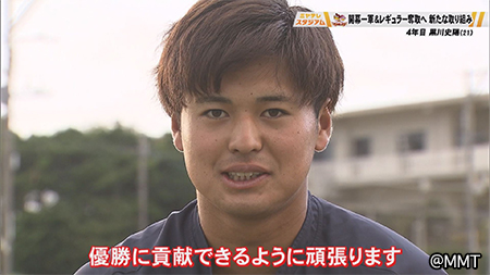 黒川選手「もう4年目なので1軍の試合で出続けて活躍しまくって、優勝に貢献できるように頑張ります」