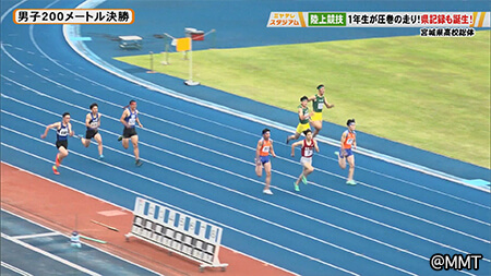男子200メートルでは、第4レーン、仙台一高の星颯人選手が集団から抜け出し大会新記録の21秒29で優勝。