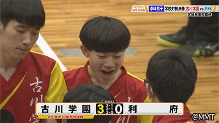 シングルスとダブルス計5試合、3戦先勝で争う決勝戦は連覇を狙う古川学園と、2019年以来、2度目の優勝を目指す利府高校の対戦。3対0で古川学園が貫録の勝利!