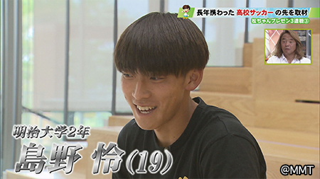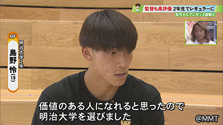 島野選手 「目標はプロサッカー選手になって活躍することなんですけど、まずは一歩一歩成長していかないとその夢には近づかないと思うので、明治の勝利のために、明治の優勝のために今は全力でプレーしたいと思います」