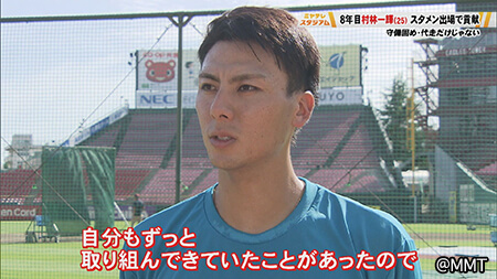 村林一輝選手 「与えられた仕事というのは一生懸命全力で絶対にやるのはもちろんなんですけど、その中で試合に出るという強い気持ちは常に持っていたので、そこはブレずにやってきました」