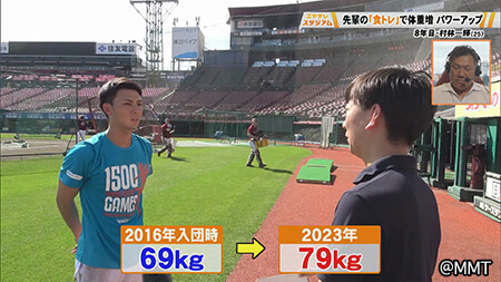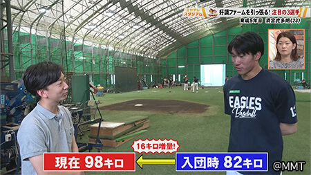 先輩の食トレで体重が増えパワーアップした村林一輝選手。