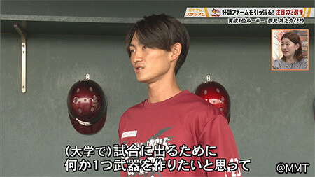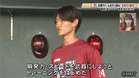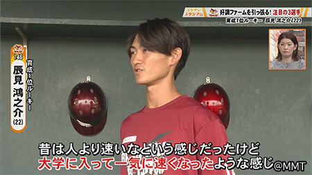 Q今シーズンの目標は? 辰見鴻之介選手 「入団前から7月までに支配下になりたいと思っていたので今月はそこに向けて頑張って、自分の武器は足だと思っているのでまだまだアピールしていきたいです」