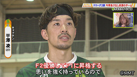 キャプテン平澤凌選手 「まずはF2を優勝しておもしろいフットサルをしていけば1人ずつでも見に来てくれる人が増えると思うので、頑張って集中していきたい」
