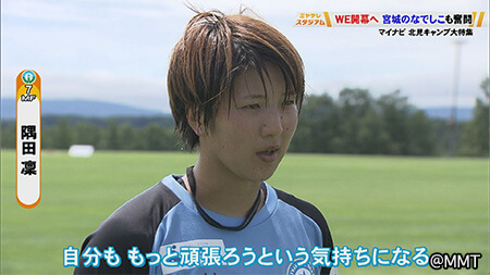 隅田凛選手 「なでしこジャパンの皆さんが戦っていて、チームメイトのひなたもすごく活躍していて、自分も頑張ろうという気持ちになります」