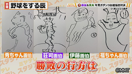 お絵描き対決のお題は「野球をする辰」