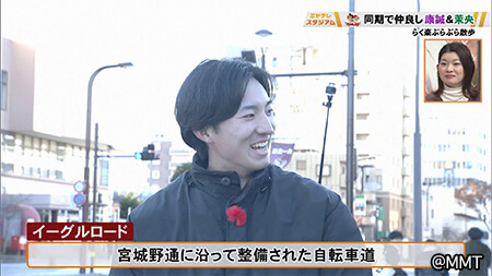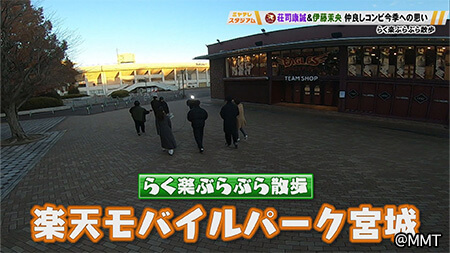 食事を終えた荘司康誠投手と伊藤茉央投手、球場へ向け散歩を再開!