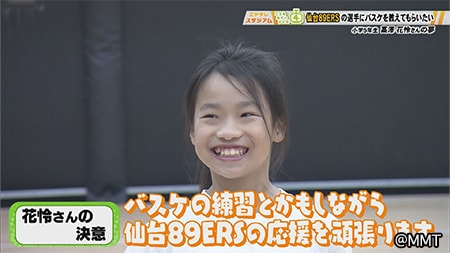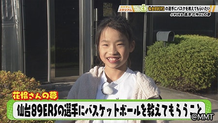 仙台市の高澤花怜ちゃんから「いつも試合を見ている仙台89ERSの選手にバスケを教えてもらって、バスケが出来るようになりたい」という応募がありました。